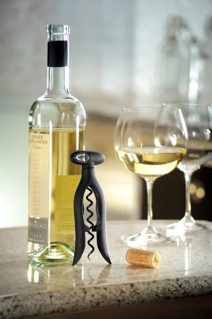 Der schwarz- und silberfarbige Korkenzieher MOLTOVINO von GEFU überzeugt durch sein tolles Design, seine Funktionalität und seine einfache Handhabung. Die Spindel des Korkenziehers ist beschichtet und dadurch leicht in den Korken eindrehbar. Die intelligente Mechanik ist so konstruiert, dass durch den Selbstzieher-Effekt nur ein geringer Kraftaufwand zum Öffnen nötig ist. Durch die hochwertige Verarbeitung liegt der Korkenzieher gut in der Hand.