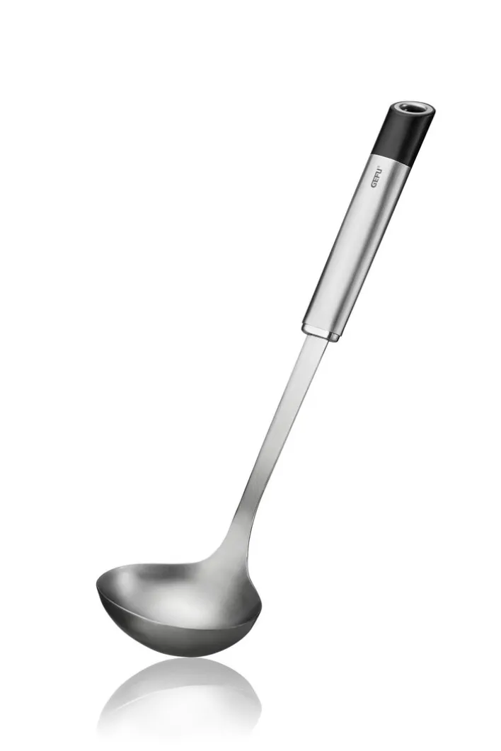 Der Schöpflöffel PRIMELINE von dem Markenhersteller GEFU ist silberfarbig und ein stylisches Küchenutensil im modernen Haushalt. Mit seinem neutralen sowie ausgesprochen eleganten Design fügt er sich in alle Küchenaccessoire-Kollektionen ein und ist – an einer Aufhängung außerhalb der Schubladen angebracht – ein echter Hingucker.