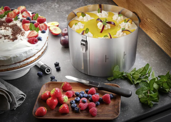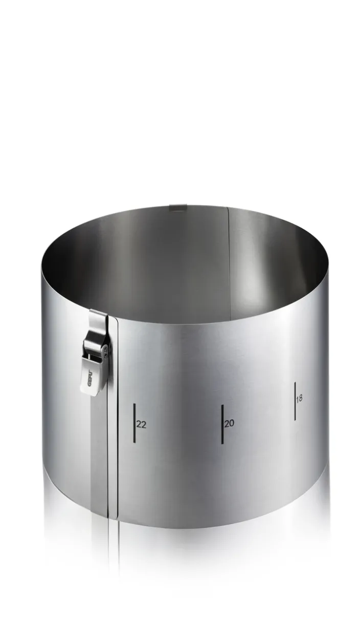 Besonders praktisch ist die verstellbare Funktion des Tortenrings, die es ermöglicht, den Durchmesser flexibel anzupassen. Die auf dem Ring sichtbaren Markierungen erleichtern das präzise Einstellen der gewünschten Größe. Der Tortenring ist backofengeeignet, was ihn vielseitig einsetzbar macht, sei es für das Backen oder das Schichten von Torten. Mit einem Gewicht von nur 0,4 kg ist er leicht zu handhaben und zu reinigen. Dieses Produkt vereint Funktionalität und Design und ist ein Muss für jede gut ausgestattete Küche.