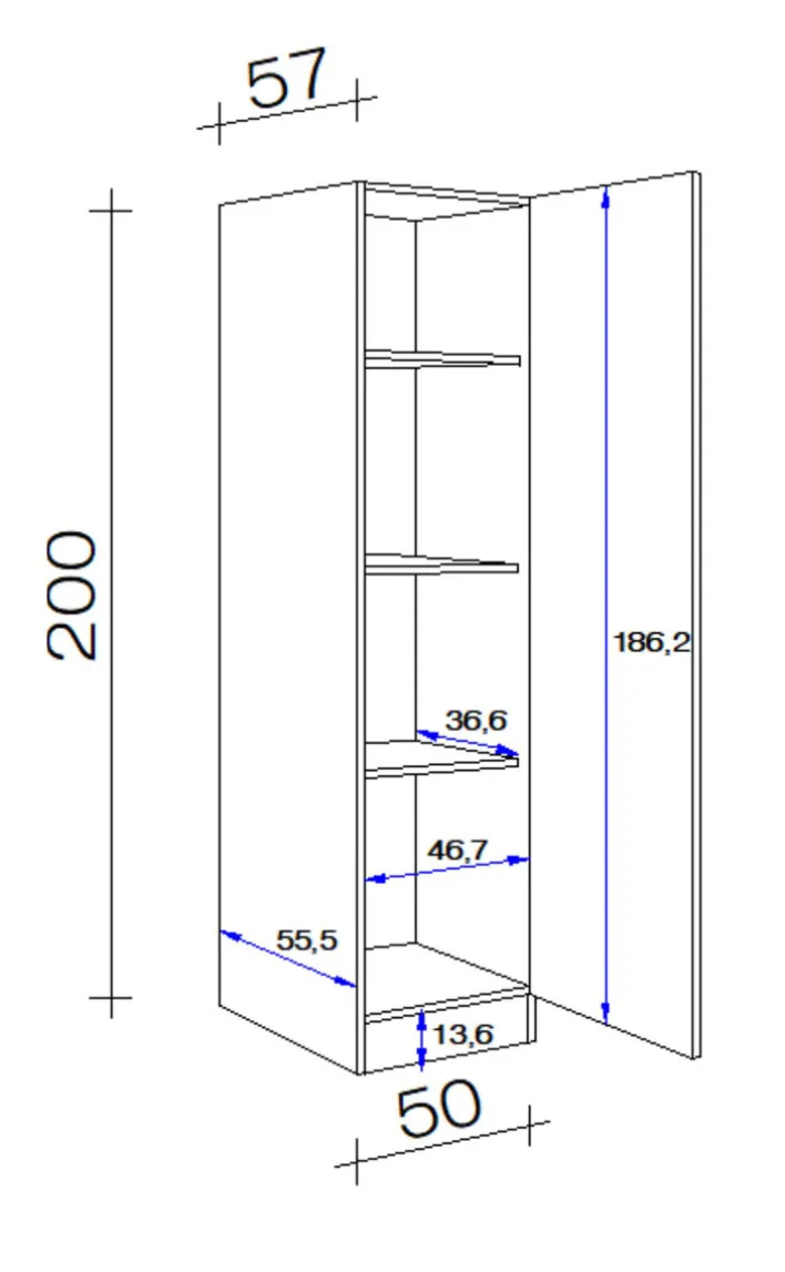 Breite: 50 cmHöhe: 200 cmTiefe/Ausladung: 57 cmLänge: 57 cmGewicht: 11,7 kg