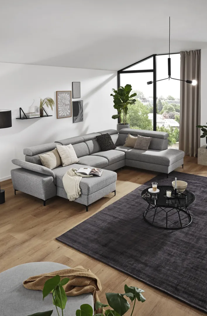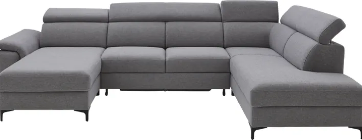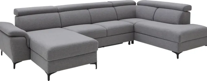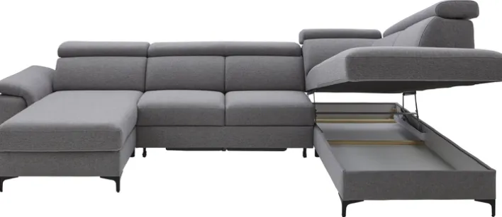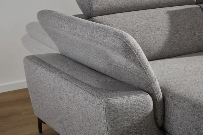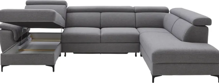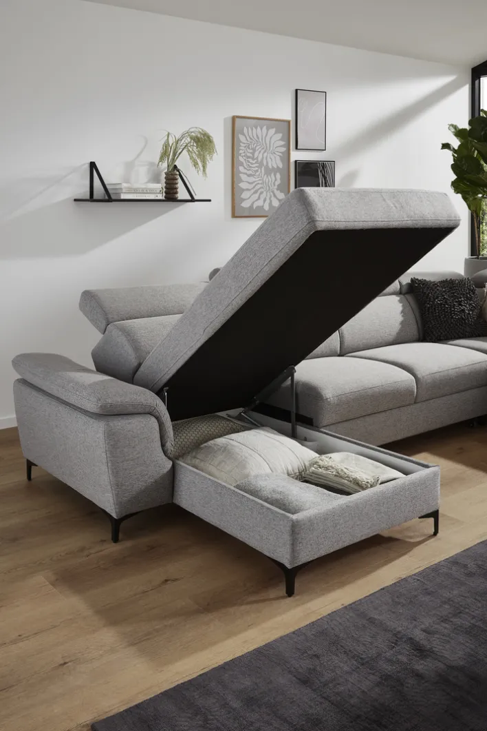 Die Wohnlandschaft BRAGA in Hellgrau bietet mit einer großzügigen Liegefläche von 272 x 121 cm viel Platz für erholsame Stunden. Die durchdachte Funktionalität punktet mit einer hochwertigen Schaumstoffpolsterung auf Wellenunterfederung, verstellbaren Kopfstützen, Armteilverstellung und einem integrierten Bettkasten.
