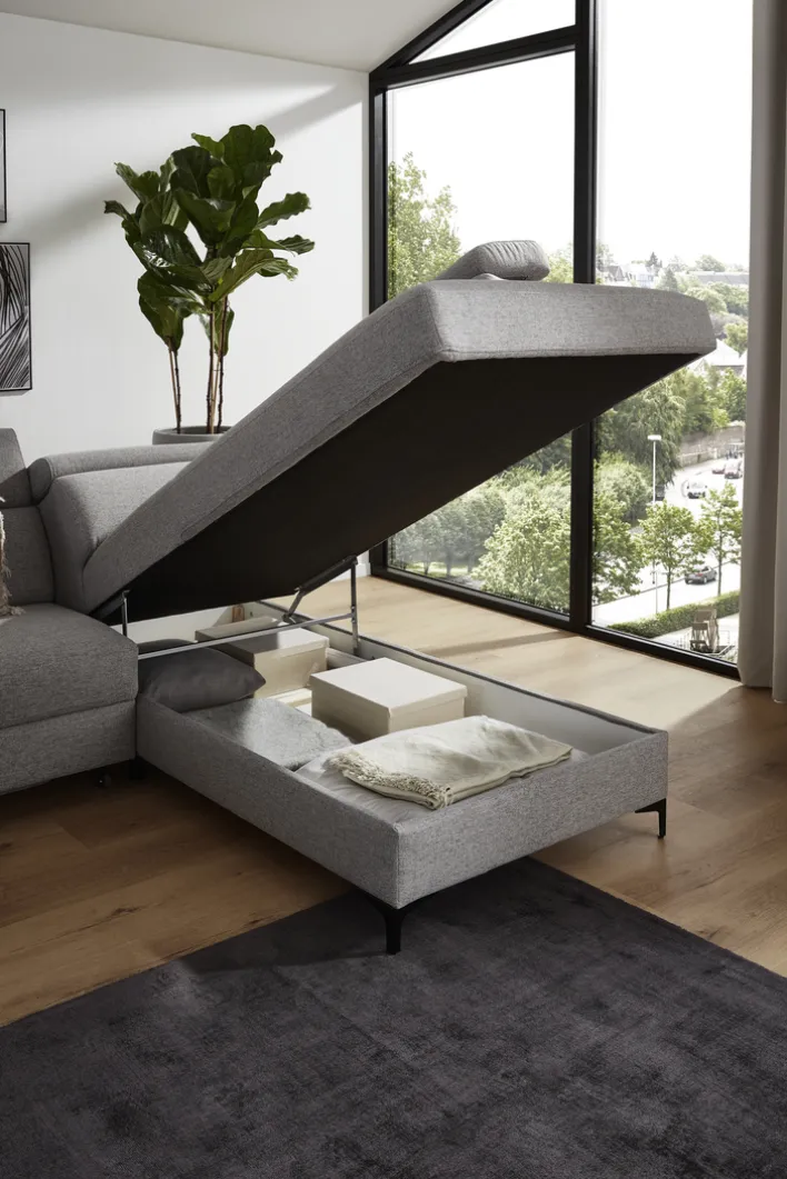 Mit ihrem luxuriösen, modernen Design fügt sich die Wohnlandschaft BRAGA der Marke GIOVANNI d’Alberto harmonisch in jedes Wohnzimmer ein. Durch den echt bezogenen Rücken kann es frei im Raum aufgestellt werden. Ob als gemütlicher Rückzugsort für entspannte Abende oder als komfortables Gästebett, das modulare Sofa vereint Stil, Vielseitigkeit und Funktion in einem Möbelstück, das begeistert. Die Bettwäsche lässt sich praktisch im Bettkasten verstauen.