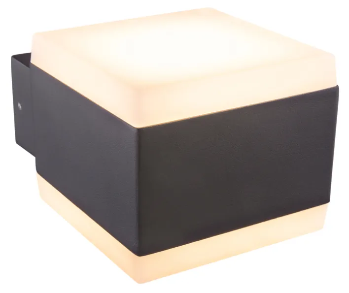 Das Gehäuse und die Wandhalterung der LED Außenwandleuchte SLICE bestehen aus Aluminium Druckguss. Das leichte Metall ist lackiert. Die Abdeckungen sind aus robustem Kunststoff gefertigt. Das LED-Leuchtmittel ist fest in das Gehäuse der Außenwandleuchte eingebaut.