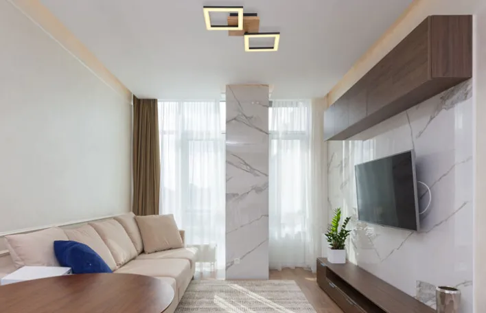 Die energiesparende GLOBO LED Deckenlampe KERRY zeigt sich in einer hochwertiger Holzoptik und weist eine Gesamtgröße von 42 x 22 cm auf. Hier treffen warme Materialien auf moderne Elemente, die in Kombination mit dem abstrakten Design jeden Raum mit Eleganz füllen und einen echten Blickfang bieten.