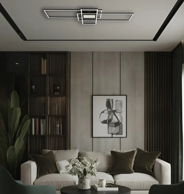 Die LED-Deckenlampe aus der Serie SAUNDERS von Globo besticht durch ihr modernes, rechteckiges Design und die elegante Farbkombination aus Schwarz und Weiß. Gefertigt aus hochwertigem Metall und Kunststoff, fügt sie sich nahtlos in verschiedene Einrichtungsstile ein. Die Lampe hat eine Breite von 110,8 cm, eine Höhe von 68 cm und eine Tiefe von 42 cm, was sie zu einem markanten Element in jedem Raum macht. Diese Deckenlampe ist mit einer fest eingebauten LED ausgestattet, die eine maximale Lichtleistung von 3.302 Lumen und eine Farbtemperatur von 2.700 bis 6.500 Kelvin bietet. Sie ist dimmbar und verfügt über eine Memory-Funktion, eine Nachtlichtfunktion sowie einen Timer. Die Lichtfarbverstellung (CCT) ermöglicht es, die Beleuchtung individuell anzupassen. Eine Fernbedienung ist im Lieferumfang enthalten, um die Bedienung zu erleichtern.