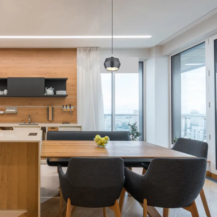 Die 1-flammige LED Pendelleuchte MARTHY von GLOBO hat einen Durchmesser von 10 cm und passt in den modern eingerichteten Wohnbereich. Auch für die Theke im Küchen- und Essbereich ist die Leuchte in der Farbe Grau ideal. Die spezielle Form des Lampenschirms verleiht der Leuchte einen besonderen Charakter und bietet zahlreiche Kombinationsmöglichkeiten. Die höhenverstellbare Pendelleuchte verleiht jedem Wohnraum das gewisse Etwas und schafft eine wohnliche Atmosphäre.