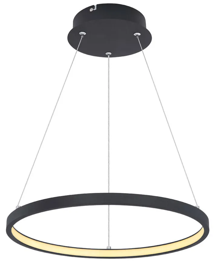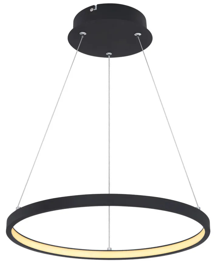 Die schwarze Pendellampe RALPH von GLOBO LED hängt von der Decke in einer Länge von 120 Zentimetern in den Raum und ist daher ideal für die Beleuchtung von Tischen geeignet. Der maximale Durchmesser des runden, schmalen Schirms beträgt 38,5 Zentimeter.
