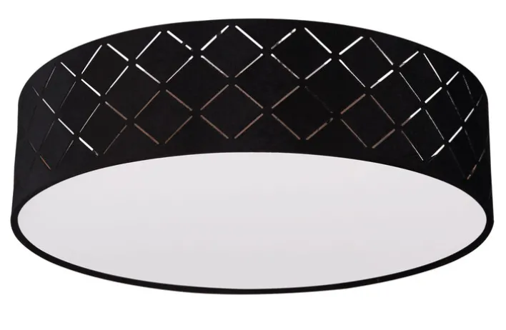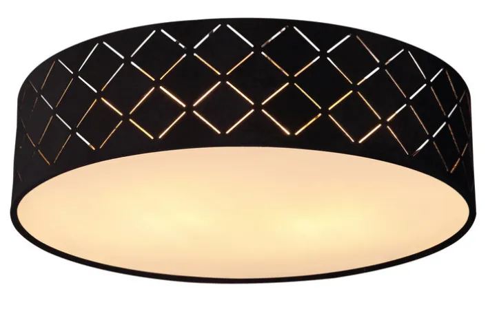 Die runde Deckenlampe VARIOS von GLOBO LED Retrofit fasziniert in dem trendigen Farbton Schwarz. Weiße und goldfarbene Elemente setzen Akzente auf dem Lampenschirm, der einen Durchmesser von 38 Zentimetern und eine Höhe von zehn Zentimetern hat.