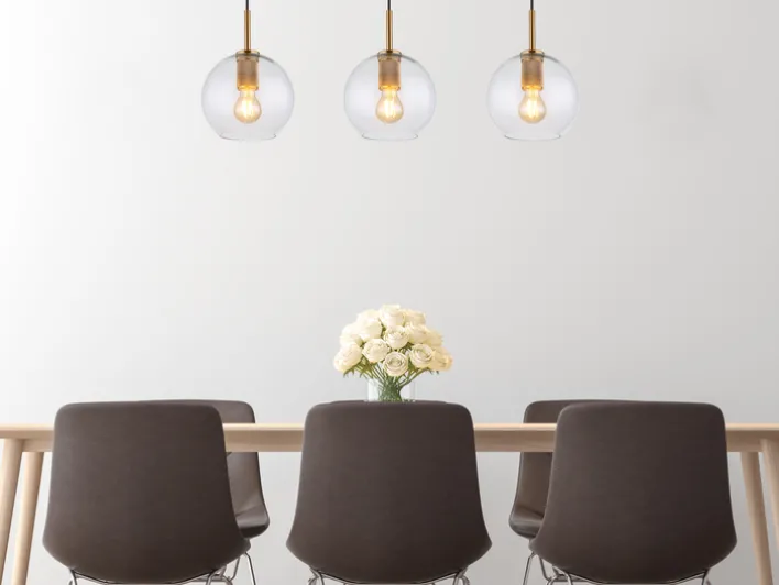 Eine Besonderheit dieser Hängeleuchte ist, dass die drei Lampenschirmen bis zu 1,20 m nach unten reichen – perfekt für die Tischbeleuchtung! Die Höhe stellen Nutzer individuell ein. Auch bei den Leuchtmitteln besteht Flexibilität. Käufer bestücken die drei E27-Fassungen nach Belieben und bestimmen so die Lichtfarbe und die Lichthelligkeit. Die Pendelleuchte der Marke GLOBO empfiehlt sich für alle, die ihre Räume mit einem eleganten Design aufwerten wollen. Neben dem Balken sind auch die Fassungen messingfarbig: Der edle Look besticht!