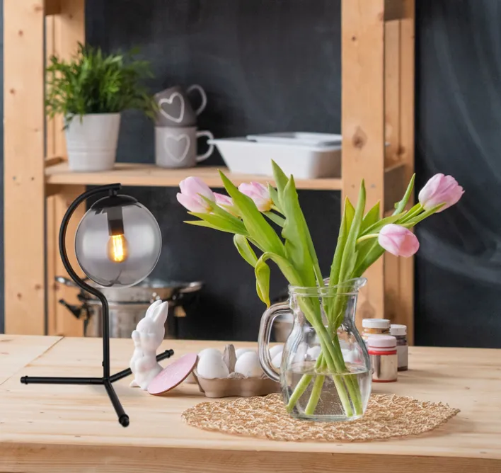 Die 33 x 33 cm große Tischlampe PORRY fasziniert mit einer edlen Farbgebung in stilvollem Schwarz. Der Retro-Look macht dieses Modell zu einem auffälligen Eyecatcher und wertet das gesamte Ambiente auf.