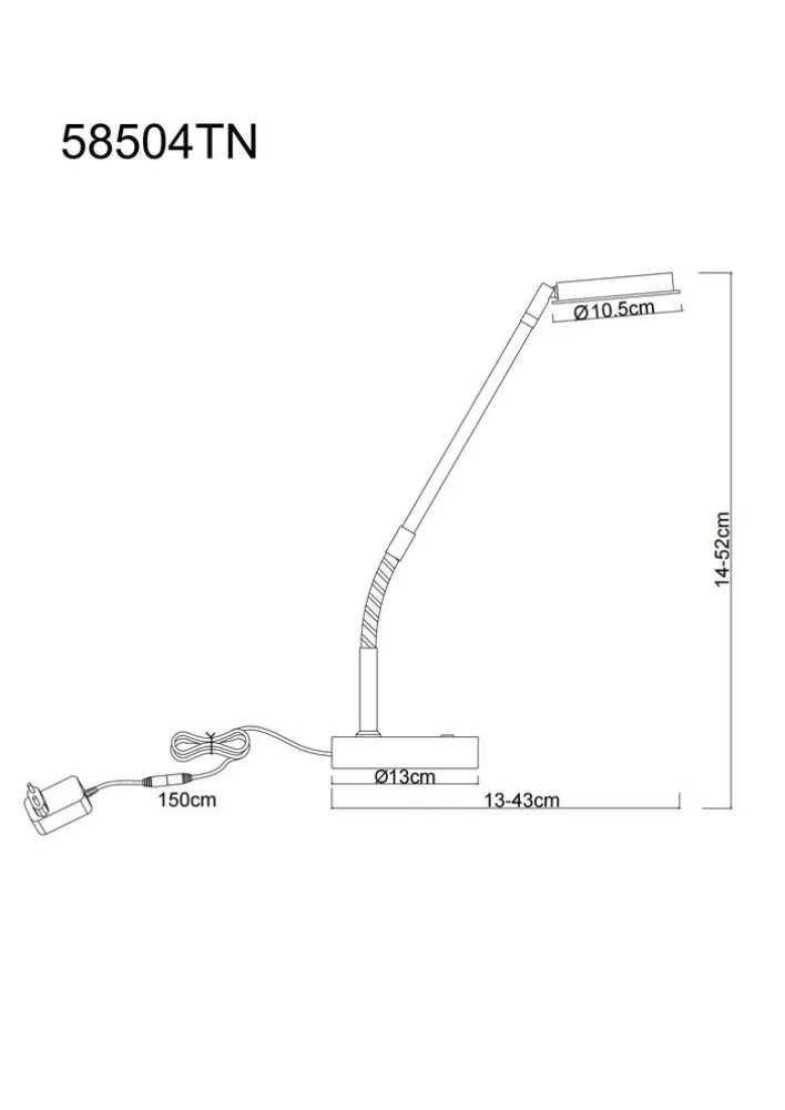 Breite: 13 cmHöhe: 53,5 cmTiefe/Ausladung: 43 cmmaximale Höhe von/bis: 14 – 52 cmLänge Zuleitung: 150 cm