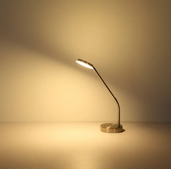 Die Schreibtischlampe SILVIO vereint modernes Design mit funktionaler Beleuchtung. Gefertigt aus Metall und Kunststoff, präsentiert sie sich in einer eleganten Alu-/Nickelfarbigen Optik. Die Lampe verfügt über einen flexiblen Arm, der eine individuelle Ausrichtung des Lichts ermöglicht. Mit einer Höhe von 53,5 cm und einer Ausladung von 43 cm passt sie perfekt auf jeden Schreibtisch. Der Tellerfuß sorgt für Stabilität und fügt sich nahtlos in das Gesamtbild ein. Ausgestattet mit einer fest eingebauten LED-Brennstelle, bietet die Lampe eine Lichtleistung von 350 Lumen bei einem Energieverbrauch von 6,5 Watt. Die Lichtfarbe ist auf 2.700/3350/4.000 Kelvin einstellbar, was eine Anpassung an unterschiedliche Bedürfnisse ermöglicht. Ein Touchdimmer und ein Ein-/Ausschalter sind integriert, um die Bedienung zu erleichtern. Die Schutzklasse 3 und die Schutzart IP20 gewährleisten Sicherheit im täglichen Gebrauch. Mit einer Zuleitungslänge von 150 cm bietet die Lampe Flexibilität bei der Platzierung.