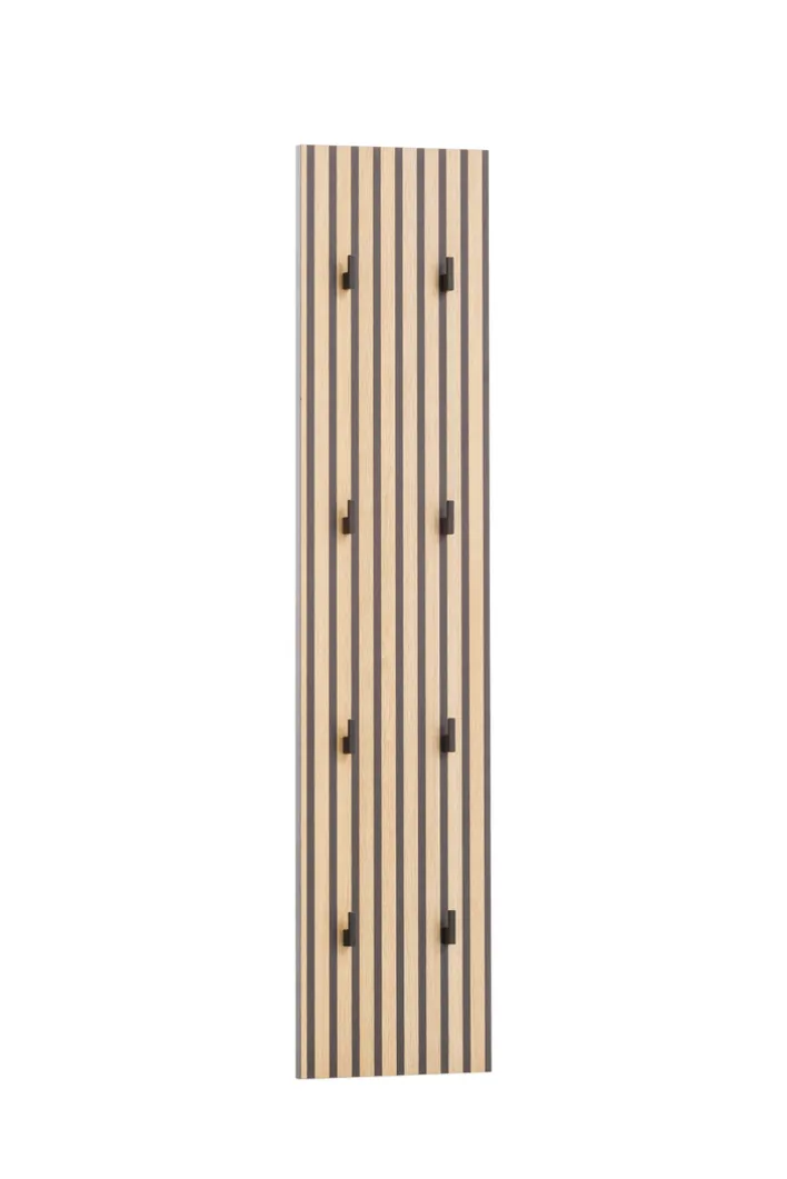 Das Design des Wandboards zeichnet sich durch ein ansprechendes Streifenmuster aus, das dem Raum eine moderne Note verleiht. Es verfügt über acht Haken aus Metall und Kunststoff, die ausreichend Platz für Jacken, Taschen oder Accessoires bieten. Dieses Produkt ist ideal für Flure oder Eingangsbereiche, wo es sowohl als praktisches als auch stilvolles Element dient.