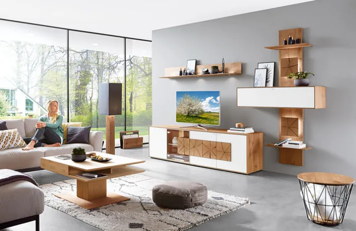 Die Wohnwand CAYA aus dem Hause hartmann wird in jedem Wohnzimmer zum faszinierenden Blickfang mit natürlicher Ausstrahlung.