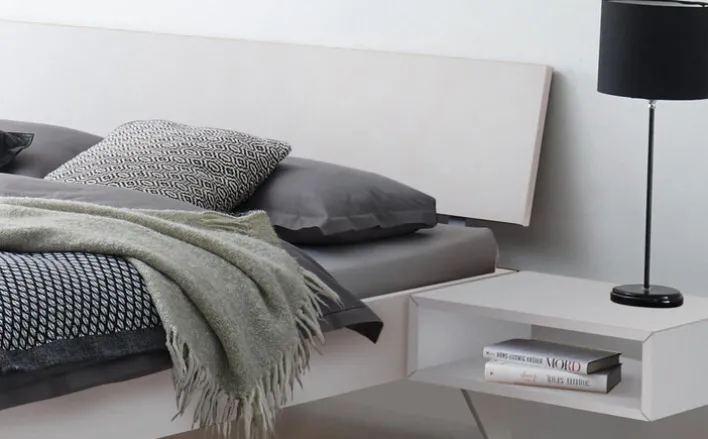 Das robuste Bett mit den schräg stehenden Füßen und dem ebenfalls schräg arrangierten Kopfteil, das eine Höhe von 74 Zentimetern hat, wird ohne Matratze und ohne Lattenrost geliefert. Die maximale Belastbarkeit des schlicht elegant designten Modells beträgt 170 Kilogramm. Das Bettgestell passt sowohl in helle Schlaf- als auch in gemütlich mit weiteren Möbeln eingerichtete Gästezimmer.