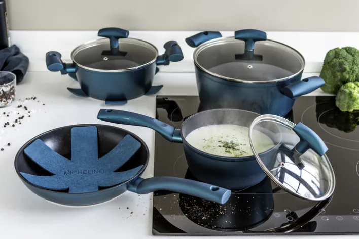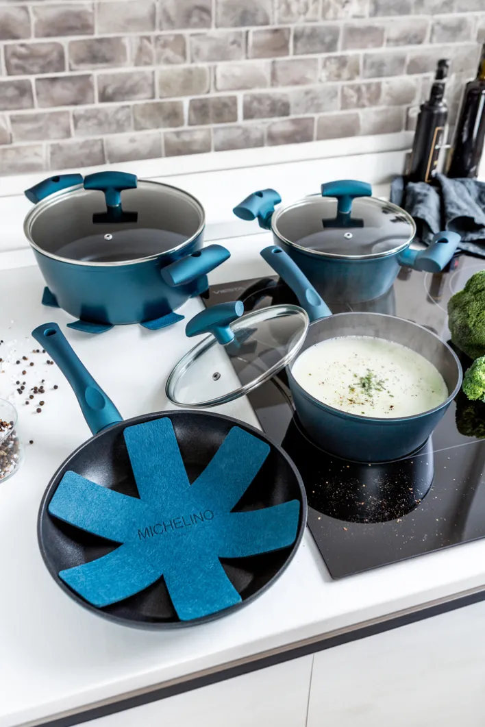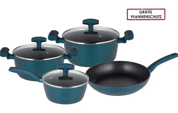 Das 7-teilige HATEX Topf Set NORA in der Farbe Petrol besticht durch sein modernes Erscheinungsbild und seine hohe Funktionalität. Gefertigt aus Aluminium, eignen sich die Töpfe für alle Herdarten.