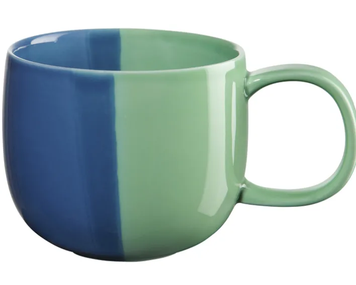 Der abgebildete Becher aus der Marke Asa besticht durch sein modernes, zweifarbiges Design in Blau und Grün. Die harmonische Farbkombination verleiht dem Becher eine frische und ansprechende Optik, die in jede Küche passt. Hergestellt aus hochwertigem Porzellan, bietet der Becher eine robuste und langlebige Qualität. Mit einem Fassungsvermögen von 400 ml eignet er sich ideal für Kaffee, Tee oder andere Heißgetränke.