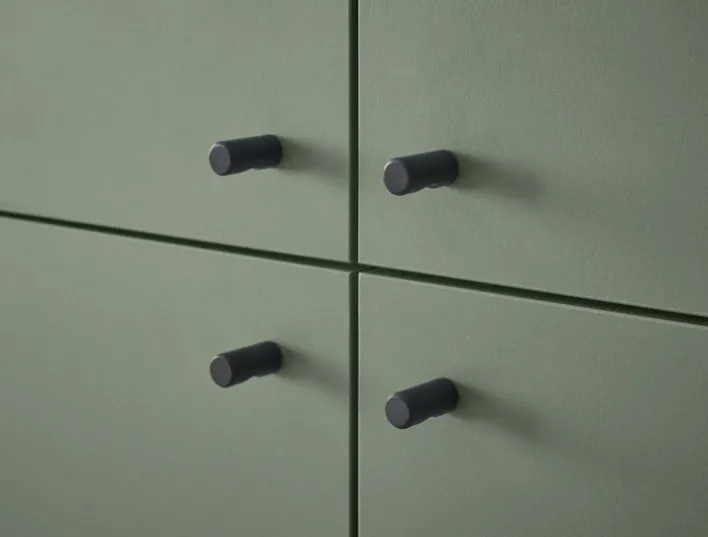 Das Highboard ALVA mit den Maßen 107 x 134 cm bietet mit seiner Kombination aus salbeifarbig und braun eine einzigartige Optik.