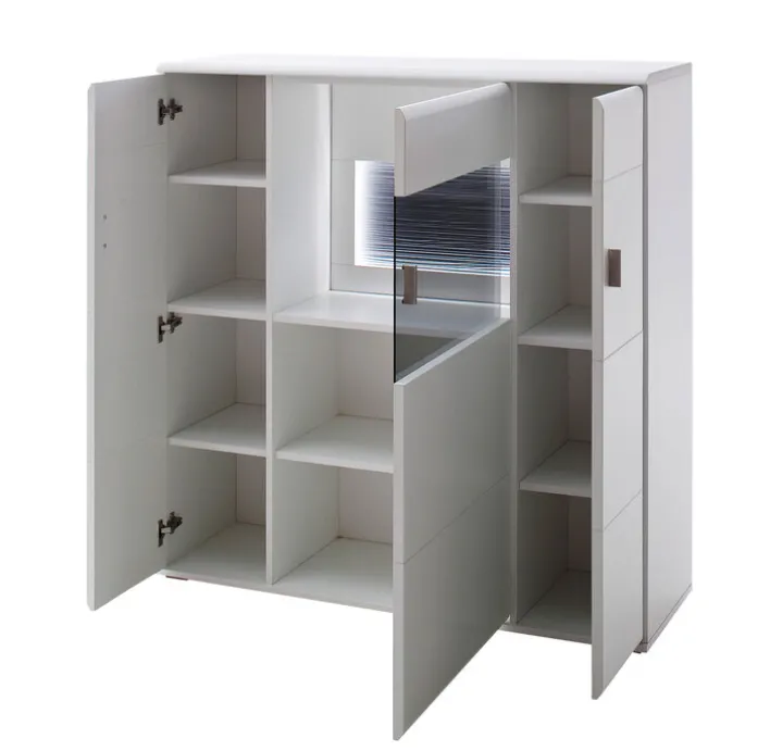 Weiße NB-Fronten und ein anthrazitfarbener 3D-Einsatz machen das 120 cm breite Highboard AMORA zur stilvollen Ergänzung für ein modern eingerichtetes Wohn- und Esszimmer.