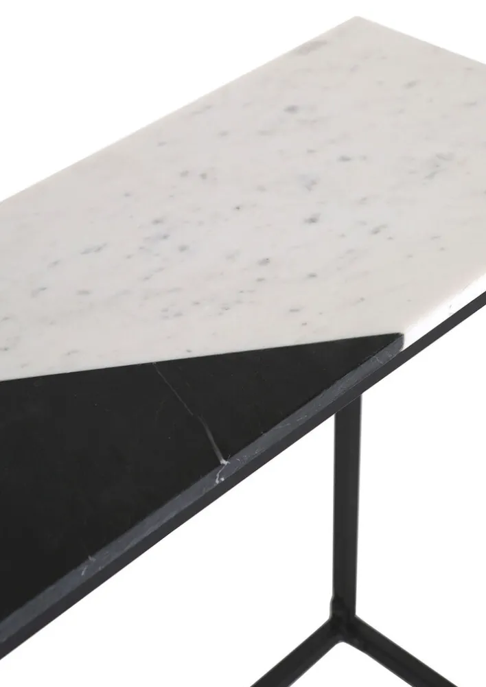 Das mit einer Tischplatte aus feinem Marmor versehene, filigrane Piece eignet sich als dekorative Ablage für Deko-Objekte wie eine Skulptur und sieht auch mit einer schicken Blumenvase gut aus. Das Gestell ist aus Metall gefertigt und verleiht dem Wohnzimmer, Flur oder Schlafzimmer eine elegante Note. Wer einen exquisiten Konsolentisch sucht, ist hiermit hervorragend beraten.
