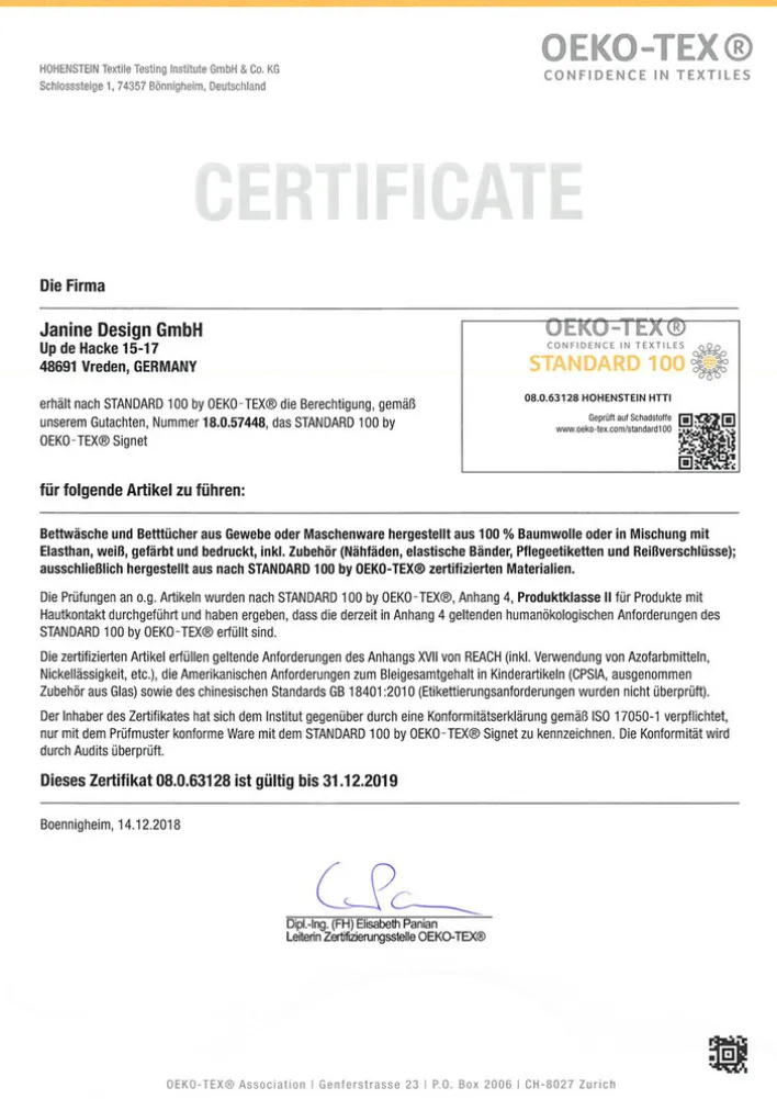 Zertifikate/Prüfzeichen: Standard 100-geprüftTextiles Vertrauen-Ökotex
