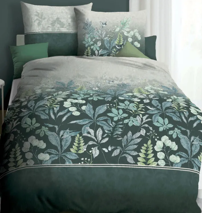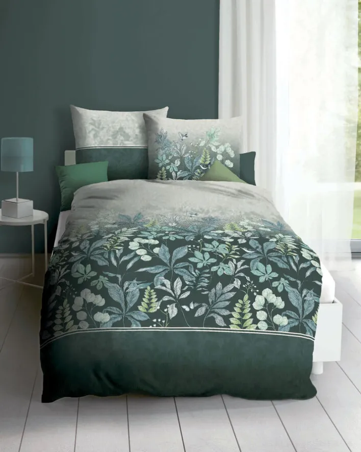Die Satin-Bettwäsche AUBRY besticht mit ihrem eleganten Design mit einem smaragdfarbigen, floralen Muster. Der Bettbezug misst 135 x 200 cm. Der dazugehörige Kissenbezug ist 80 x 80 cm groß. Diese Bettwäsche ist aus 100 % Standard 100-geprüfter Baumwolle mit einer Textiloberfläche in Satin gefertigt.