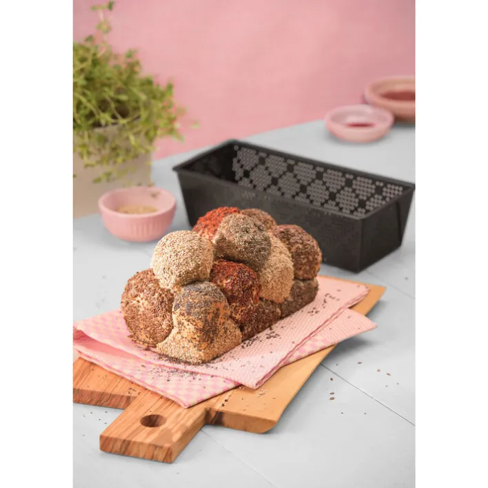 Die Brotbackform besteht aus robustem Stahl und ist mit einer Antihaft-Beschichtung ausgestattet, sodass Sie das Brot nach dem Backen problemlos herauslösen können. Außerdem ist die Form, anders als eine Kuchenbackform, perforiert. Die vielen kleinen Löcher sorgen für eine hervorragende Luftzirkulation, sodass das fertige Brot die optimale Konsistenz hat. Die Brotbackform hat eine klassische rechteckige Form und bietet sich für verschiedene Brotsorten an. Sie kann in jedem handelsüblichen Backofen genutzt werden und lässt sich nach dem Gebrauch leicht reinigen.