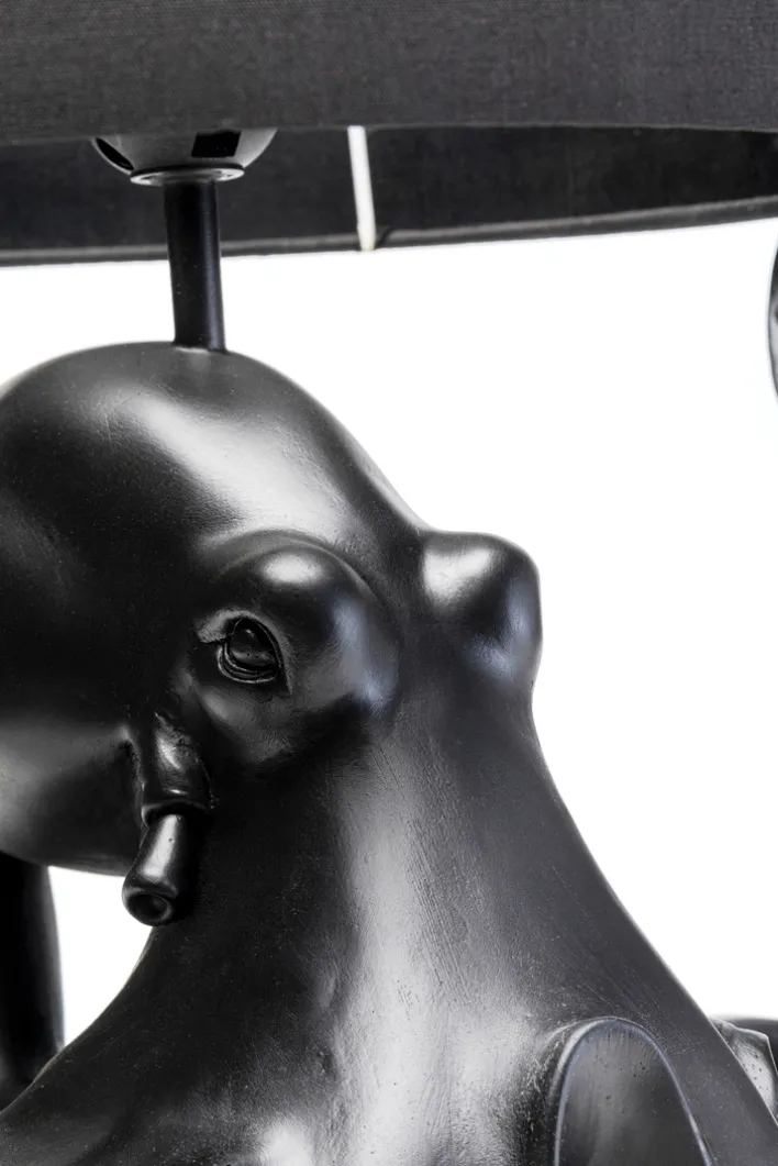 Diese Leuchte besticht durch ihre auffällige Form eines Oktopus, dessen Tentakel kunstvoll den Lampenschirm umschlingen. Gefertigt aus schwarzem Polyresin, verleiht sie jedem Raum einen Hauch von Glamour und zieht alle Blicke auf sich.