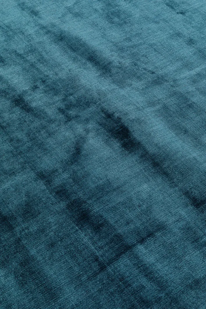 Die Oberseite des handgearbeiteten Teppichs besteht zu 100 Prozent aus Viskose. Die Fasern sind durchgefärbt. Die Rückseite ist aus Baumwolle und mit einer Antirutschbeschichtung ausgestattet. Zum Reinigen ist ein Staubsauger ausreichend.
