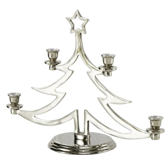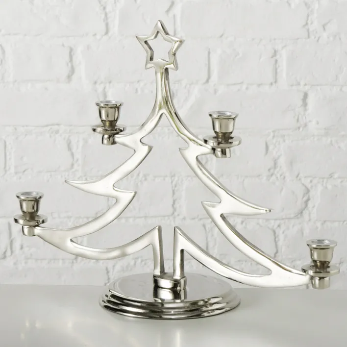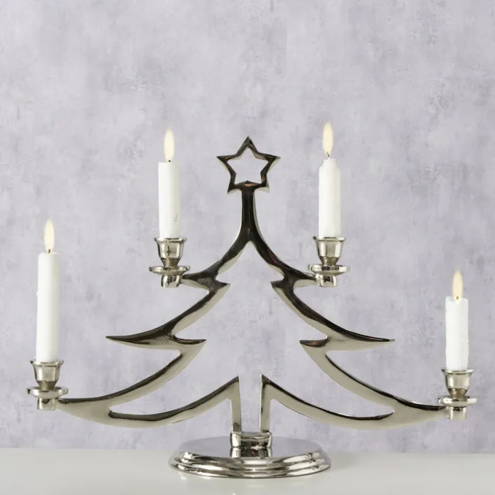 Der Kerzenständer der Serie GRANTE besticht durch sein elegantes Design in Form eines stilisierten Weihnachtsbaums. Gefertigt aus hochwertigem Aluminium, präsentiert er sich in einer ansprechenden Alu-/Nickelfarbe mit vernickelter Oberflächenbeschichtung. Diese Kombination verleiht dem Kerzenständer nicht nur eine edle Optik, sondern auch eine robuste Langlebigkeit. Mit einer Breite von 17 cm, einer Höhe von 35 cm und einer Tiefe von 47 cm ist er ein markanter Blickfang auf jedem Tisch oder Sideboard.