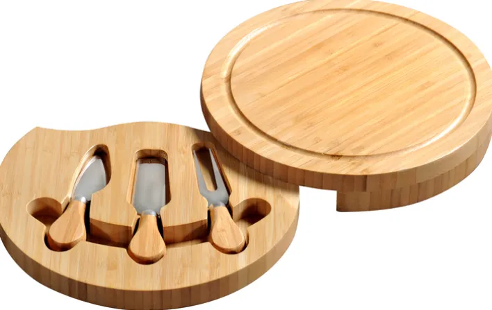 Das Schneidebrett-Set enthält zudem drei spezielle Käsemesser, die in einer passgenauen Aussparung im Brett verstaut werden können. Diese Messer sind mit Holzgriffen ausgestattet, die gut in der Hand liegen und das Schneiden erleichtern. Die runde Form des Brettes und die integrierte Aufbewahrungslösung für die Messer machen dieses Set zu einem praktischen und stilvollen Küchenhelfer. Die Marke Kesper steht für Qualität und Langlebigkeit, was dieses Set zu einer wertvollen Ergänzung für jede Küche macht.
