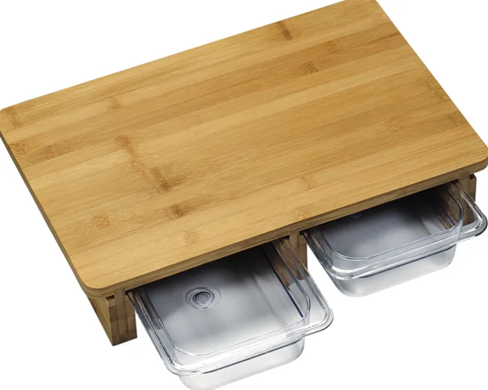 Das Schneidebrett von Kesper ist eine praktische und stilvolle Ergänzung für jede Küche. Mit einer Breite von 14 cm, einer Höhe von 31,5 cm und einer Länge von 47 cm bietet es ausreichend Platz für die Zubereitung von Speisen. Das Brett besteht aus einer Holznachbildung mit Bambusoptik, die nicht nur robust, sondern auch ästhetisch ansprechend ist. Die Hauptfarbe Braun verleiht dem Schneidebrett eine natürliche und warme Ausstrahlung, die sich harmonisch in verschiedene Küchendesigns einfügt. Besonders hervorzuheben sind die zwei integrierten Kunststoffbehälter, die unter dem Schneidebrett platziert sind. Diese bieten eine praktische Lösung zur Aufbewahrung von geschnittenen Zutaten oder Abfällen, was die Effizienz in der Küche erhöht. Die Behälter sind leicht zugänglich und können bei Bedarf einfach herausgezogen werden. Das Schneidebrett kombiniert Funktionalität mit einem modernen Design und ist ideal für den täglichen Gebrauch in der Küche geeignet.