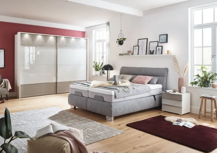 Der Kleiderschrank aus der Serie CASSANO PLUS beeindruckt durch sein modernes Design und die Kombination aus Glas und Holznachbildung. Mit einer Breite von 250 cm, einer Höhe von 217 cm und einer Länge von 67 cm bietet er großzügigen Stauraum für Kleidung und Accessoires. Die Hauptfarbe Grau wird durch weiße Elemente ergänzt, was dem Schrank eine elegante und zeitlose Optik verleiht.