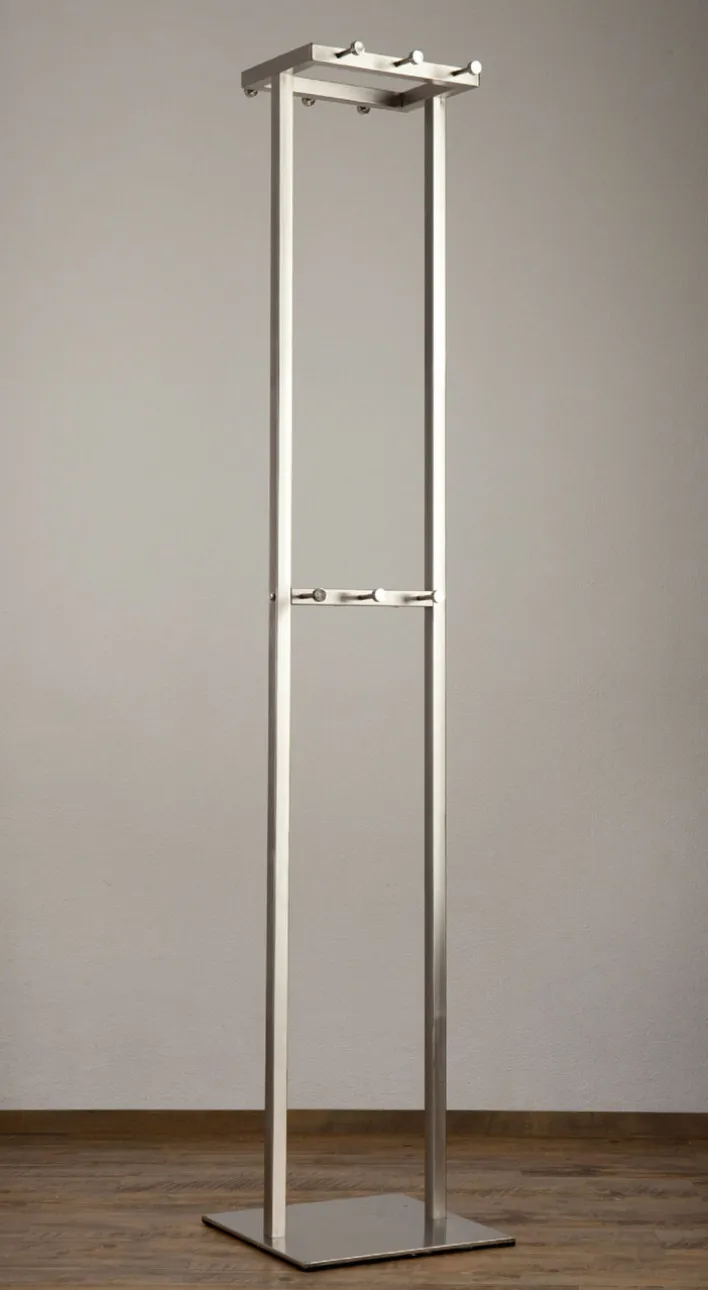 Der Kleiderständer ELLA aus Edelstahl erinnert leicht an eine Baugerüst. In diesem Falle aber ein sehr schönes und vor allem praktisches Baugerüst.