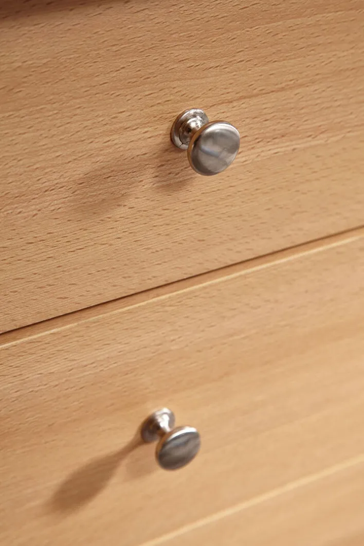Die 60 x 70 cm große Kommode in heller Buche besticht mit einem klassisch-eleganten Look. Sie lässt sich dadurch vielseitig kombinieren und bietet zudem jede Menge Stauraum.