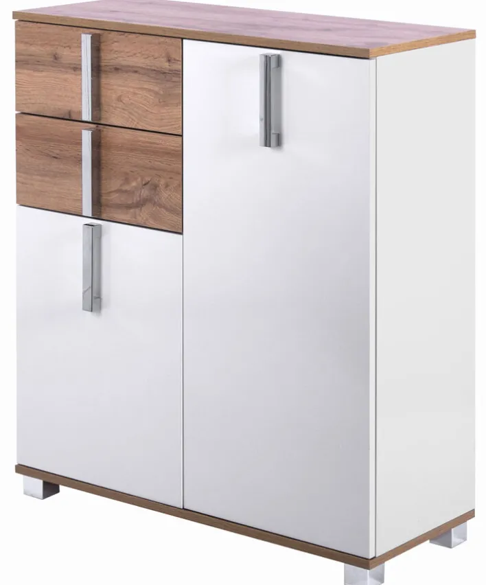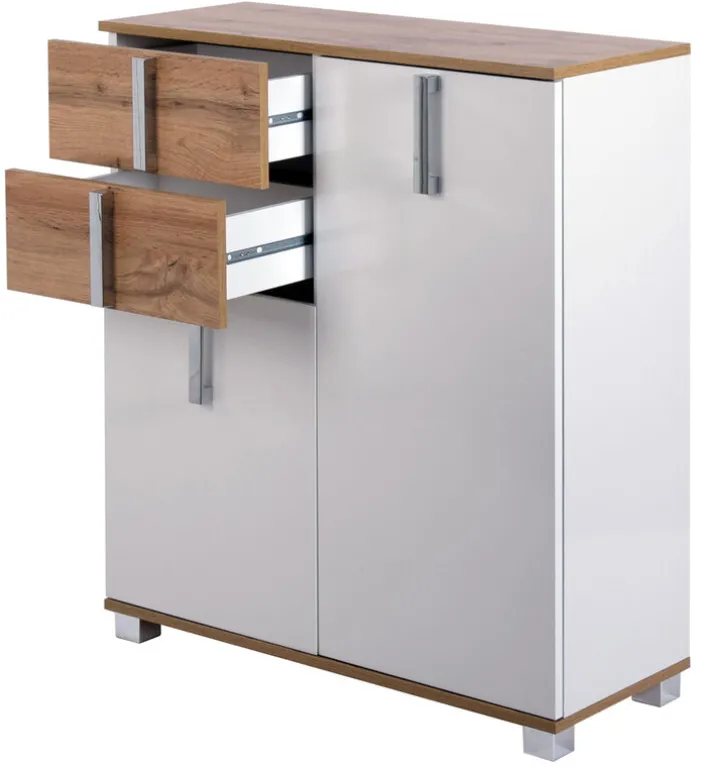 Die in der Farbe Weiß und dem Farbton Eiche Landhaus gehaltene Kommode LUCA, die die Maße 80,6 x 94,8 cm aufweist, sieht nicht nur äußerst ansprechend aus, sondern überzeugt auch dank ihrer Durchdachtheit.