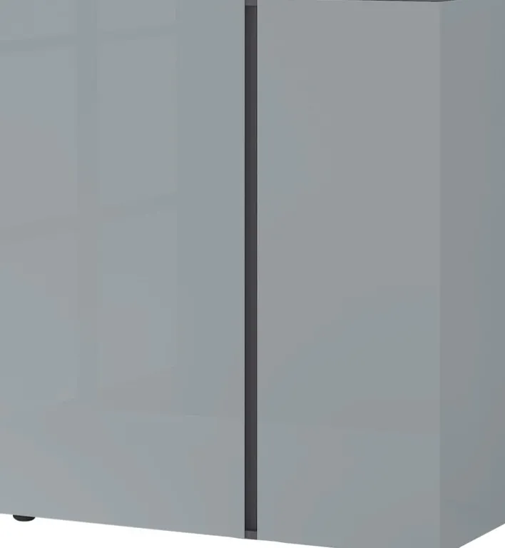 Die 2-türige Kommode MATZ ist das ideale Stauraummöbel für modern eingerichtete Wohnbereiche. Durch die Fronten und Seitenteile mit einer graufarbigen Farbglasbeschichtung ist das elegante Möbelstück ein Blickfang für Wohn-, Schlaf- oder Esszimmer. Hinter den Drehtüren mit Türdämpfung befindet sich ein geräumiger Innenraum, der mit vier verstellbaren Einlegeböden unterteilt ist.