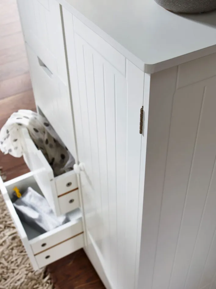 56 cm breit und 83 cm hoch ist die weiße Kommode PATTI, die mit ihrem Design im modernen Landhausstil bezaubert. Sie ist ein dekoratives Schränkchen und kommt als Einzelstück im Wohnzimmer oder Flur aufgestellt sehr gut zur Geltung.