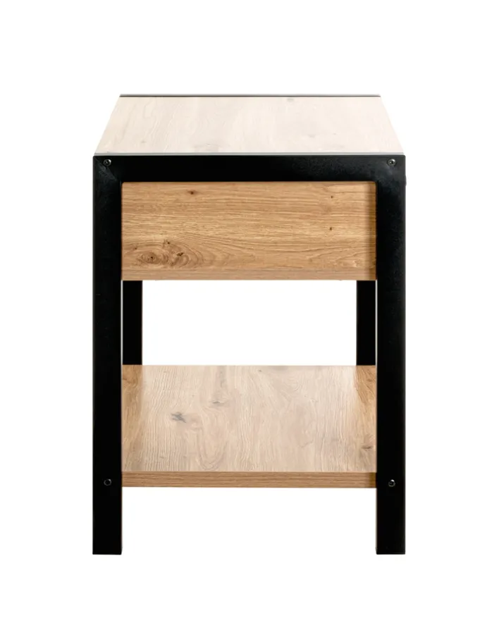 Eine Konsole im modernen Wohnstil erhält der Interessent mit dem schönen Möbelstück, das aus pulverbeschichtetem Metall und Eiche-Nachbildung gefertigt ist und eine Breite von 48,0 cm, eine Höhe von 60,0 cm und eine Tiefe von 43,0 cm aufweist. Die maximale Belastbarkeit beträgt 35,0 kg, womit die Konsole mit persönlichen Lieblings-Accessoires aller Couleur bestückt werden kann.