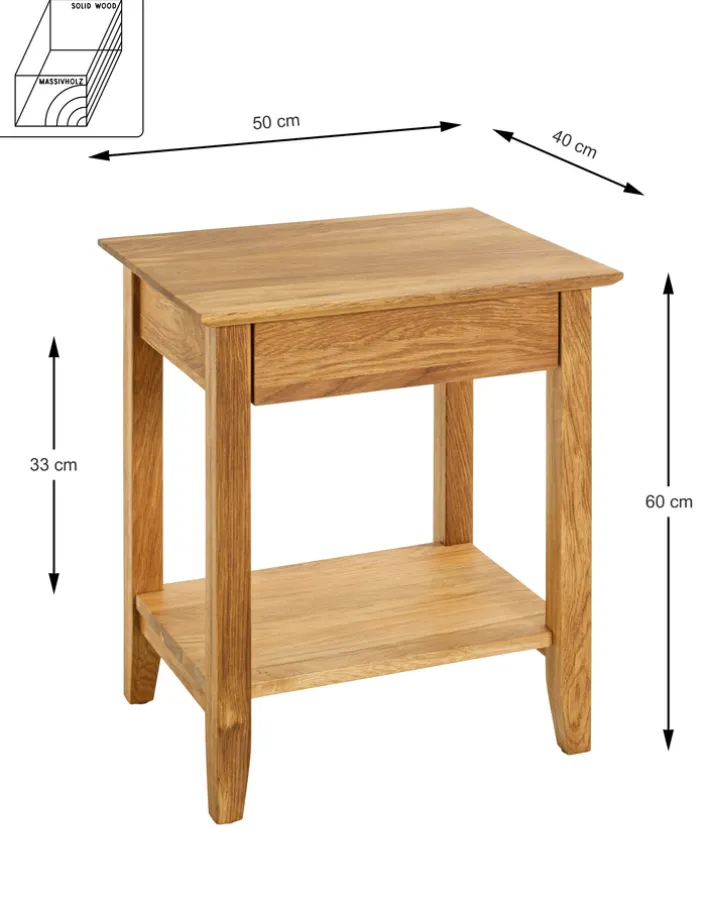 Diese hübsche und zierliche Konsole ist 50 x 40 cm groß und besteht aus massiver geölter Eiche. Sie macht sich in Wohnräumen nicht nur nützlich, sondern punktet gleichzeitig mit einer wunderschönen edlen Optik.