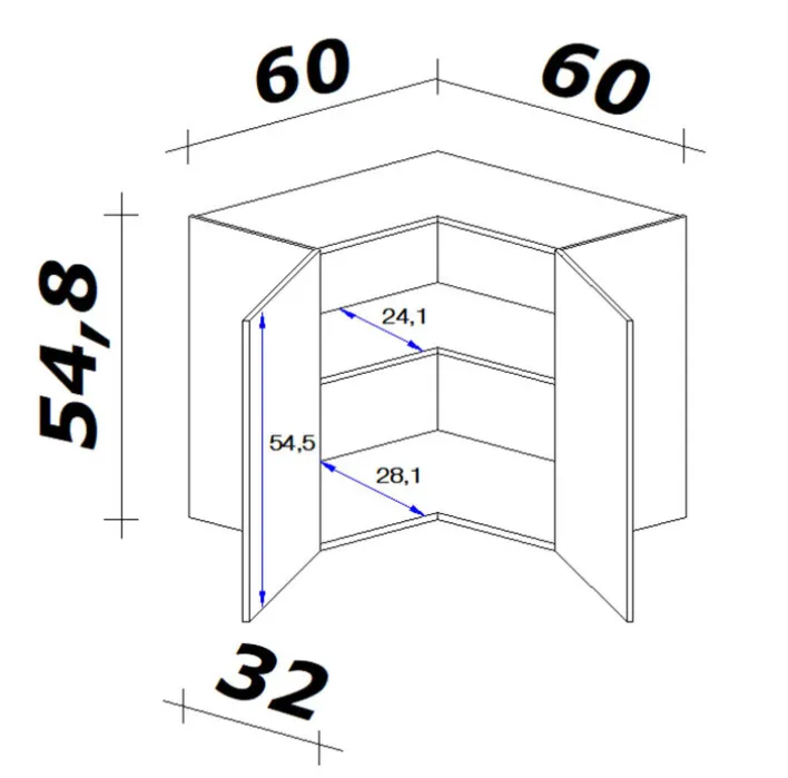 Breite: 60 cmHöhe: 54 cmTiefe/Ausladung: 32 cmLänge: 32 cm