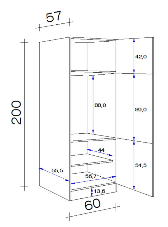 Breite: 60 cmHöhe: 200 cmTiefe/Ausladung: 57 cmGewicht: 54,10 kg