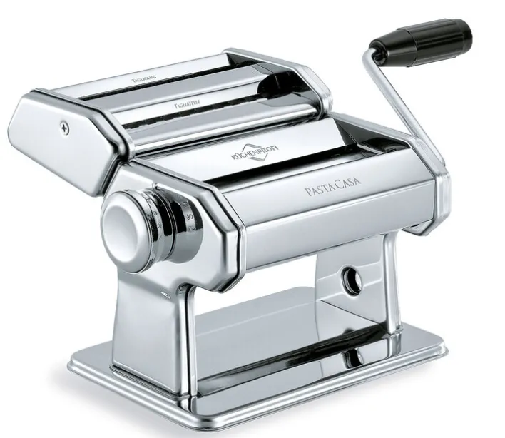 Die je 20 cm lange und breite Nudelmaschine PASTACASA von KÜCHENPROFI hat eine Höhe von 15 cm. Sie besitzt drei Aluminium Walzen für das Herstellen von Lasagne, Tagliolini und Fettucine. Durch den integrierten Regler sind außerdem sieben verschiedene Teigstärken möglich. Die KÜCHENPROFI Nudelmaschine PASTACASA ist rostfrei und leicht in der Handhabung. Mit ihr gelingen selbst gemachte Nudeln ganz leicht. Nicht nur Nudeln aus Weizenmehl, sondern auch zahlreiche Alternativen, beispielsweise mit Buchweizenmehl oder Kichererbsenmehl lassen sich mit der praktischen Küchenmaschine herstellen.