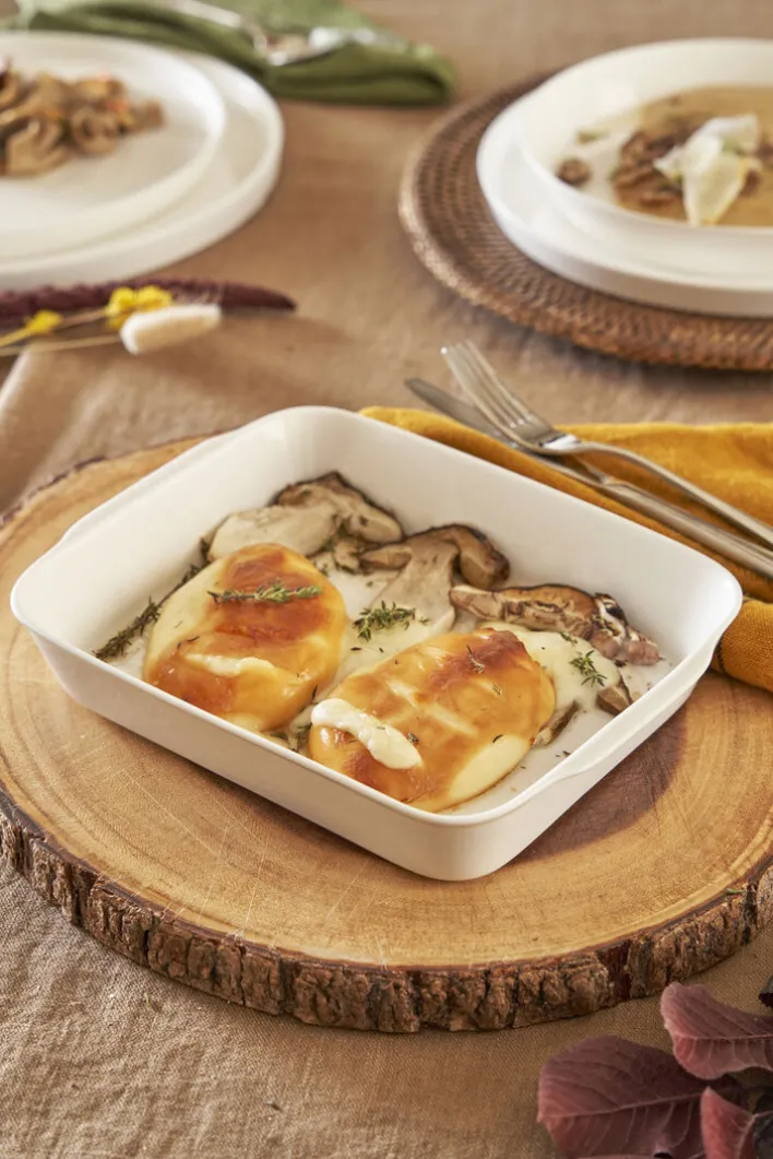 Die klassisch schöne Auflaufform ANGHIARI lässt sich problemlos zum Anrichten auf dem Esstisch verwenden. Das minimalistische Design ist absolut zeitlos. Das Porzellan kann zudem die Hitze aus dem Backofen gut speichern und hält das Essen für längere Zeit warm. Schlichte Griffe an den Seiten verhindern, dass die Form beim Tragen wegrutscht. Zum Aufwärmen übrig gebliebener Reste kann die Auflaufform bedenkenlos in die Mikrowelle gestellt werden. Nach Gebrauch lässt sich die glatte, lasierte Oberfläche leicht abwischen oder in der Spülmaschine reinigen.