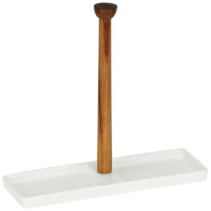 Dieses moderne LA PORCELLANA BIANCA Menagentablett CONSERVA mit interessantem Materialmix verfügt über einen 22cm langen Tablettfuß aus weißem Porzellan, welcher in zwei edel und schlicht geformte Rechtecke mit geringer Wandhöhe aufgeteilt ist.