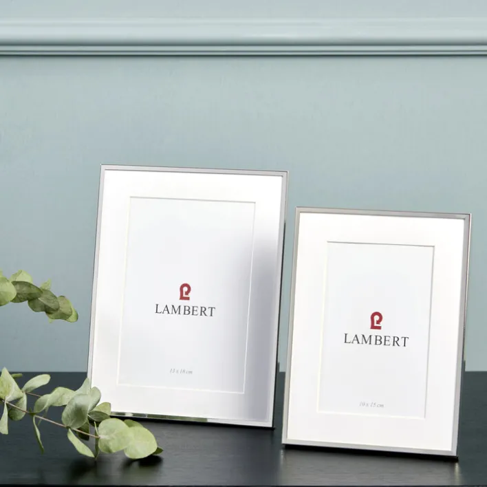 Der LAMBERT Bilderrahmen RENO nimmt Bilder im Format 13 x 18 cm auf. Er besteht aus silberfarbigem Metall. Zudem kann er aufgehängt oder aufgestellt werden. Er ist 18 cm breit und 23,1 cm hoch. Der Fotorahmen wird mit einem Aufhänger geliefert.