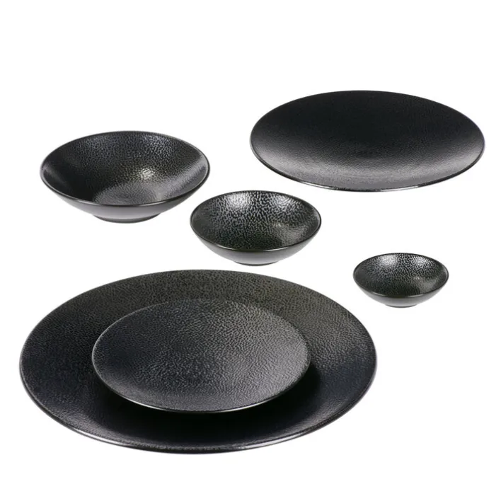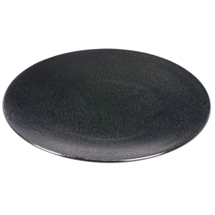 Der LAMBERT Servierteller KAORI besitzt einen Durchmesser von 34,5 cm. Das Steingut zeigt eine interessante Rochen-Optik in Schwarz und Metallic. Der Teller ist spülmaschinenfest. Er wird wie eine Servierplatte eingesetzt.