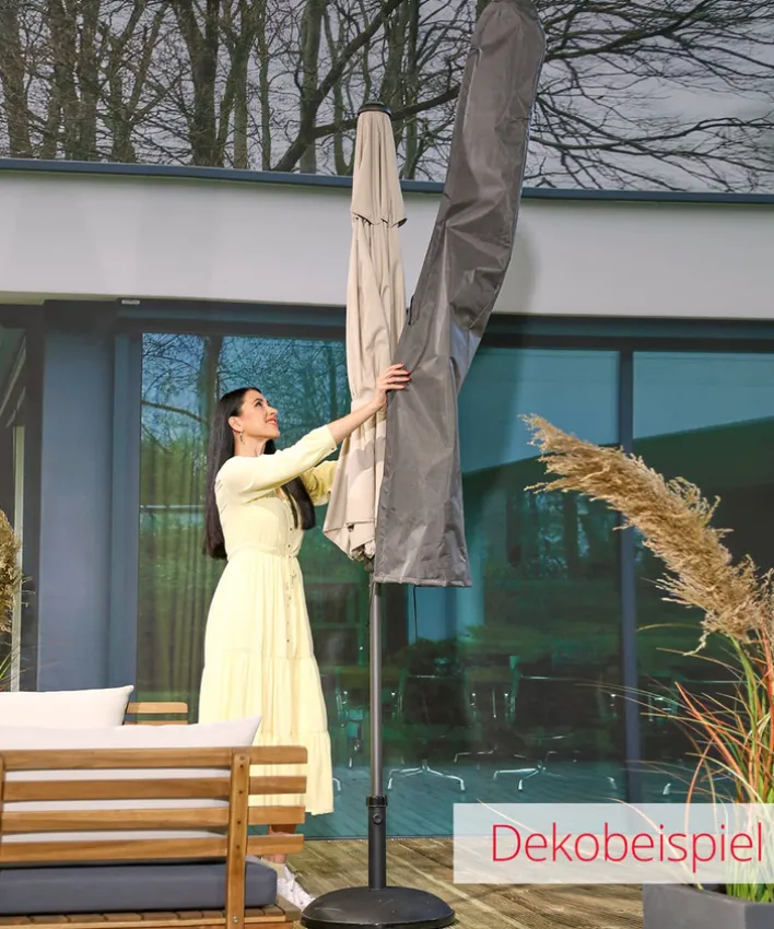 LC WHOLESALER ist ein deutsches Herstellerunternehmen, das seit 30 Jahren Wohn- und Gartenmöbel sowie -accessoires in Premium-Qualität bietet. So auch diese Schutzhülle für Sonnenschirme, die mit wenigen Handgriffen überzustülpen ist und mit einer guten Dichtigkeit gegen Staub, Regen, Schnee und Frost agiert. Sie besteht aus strapazierfähigem Polypropylen. Mit diesem Qualitätsprodukt bleiben Sonnenschirme langfristig wie neu und können sogar den Winter im Freien verbringen.