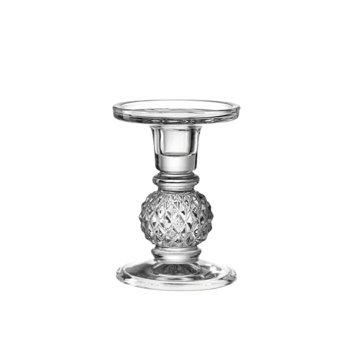 Der runde Leuchter begeistert durch seine Schönheit. Er ist für Romantiker und Nostalgiker ebenso geeignet wie für Menschen, die pures Glas lieben. Auf einem breiten runden Fuß erhebt sich eine geschliffene Kugel mit zahlreichen Facetten. Auf ihr wiederum steht der eigentliche Leuchter mit einer ausreichenden Vertiefung für eine elegante lange Kerze. Die Öffnung wirkt wie ein breiter Teller und unterstreicht deren Qualität. Aufgrund des transparenten Glases passt der Leuchter POESIA in jeden Haushalt und zu jeder Zimmereinrichtung. Er sieht auch ohne Kerze schick aus und ist ein wunderbares Dekorationsobjekt.