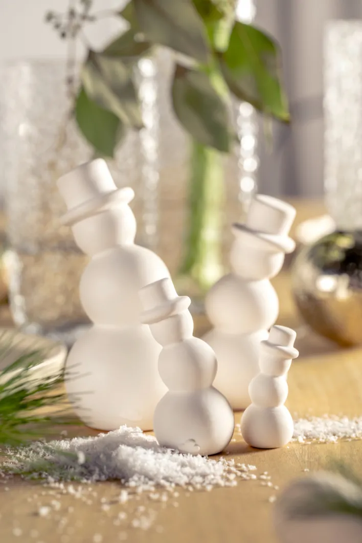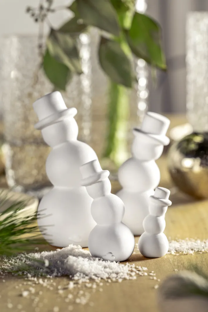 Der LEONARDO Schneemann PABLO ist aus Keramik und leicht geneigt.